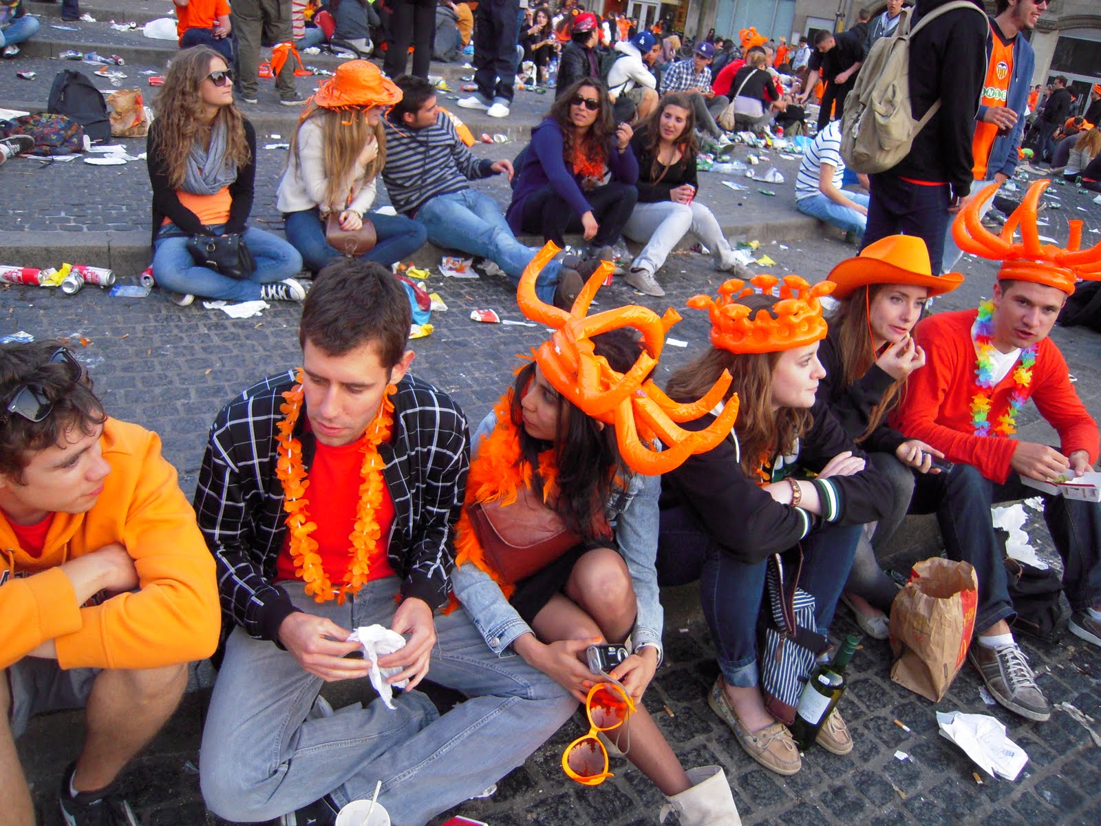 Either way, we went up to Amsterdam, the heart of the celebrations. My friends Pedro, Chris, and I took the train, where we met up with Lauren (my friend from Mizzou) and Gabi (Pedro's girlfriend). We basically went out in the morning on Saturday to experience the vrijmarkt. This is the official day where anyone in the Netherlands can sell basically anything they want in the streets. It makes it into a city wide garage sale. Some people were selling really awesome stuff, a lot of people whatever junk they found in their house. I was thinking there must be some really awesome deals in there, but we didn't really have the time/patience to look through it all. We then went to the Vondelpark where people were playing music, dancing, playing frisbee, and generally having fun. We went through the canals, where there was basically a water parade going on, with anyone who could find anything that floated and could support an engine partying in the water, making it interesting for us spectators as well. We then went to Dam Squre, where basically a carnival was going on, and heard some marching bands going through. After a long day, we went back to the dorm, had some food, and hung out until getting some sleep.